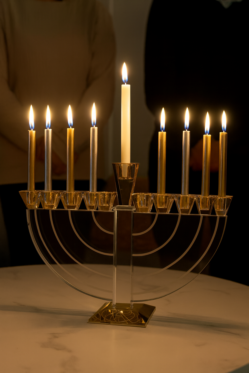 🏛️ Majestueuse & Moderne : Son design contemporain revisite la tradition. La transparence du cristal K9 permet aux flammes de se refléter à l'infini, amplifiant la magie de chaque soirée de Hanouka.